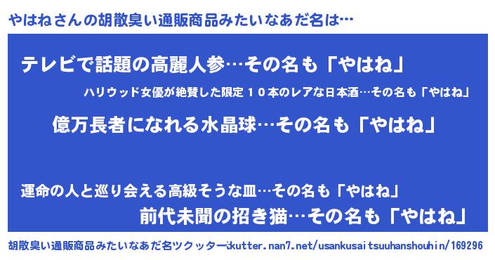 | ヘコむあだ名 | 『やはにゅー』『やはね(笑)』『豆乳』 |
