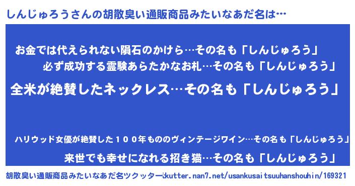 | 意味不明あだ名 | 『とにかく怪しいしんじゅろう』 |