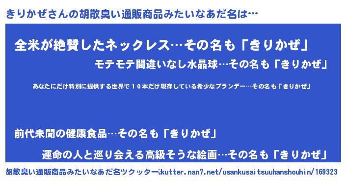 | 男性向けラノベタイトル風あだ名 | 『この素晴らしい世界にきりかぜを!』 |