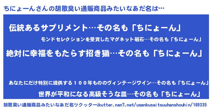 | 意味不明あだ名 | 『永久保存ちにょーん』 |