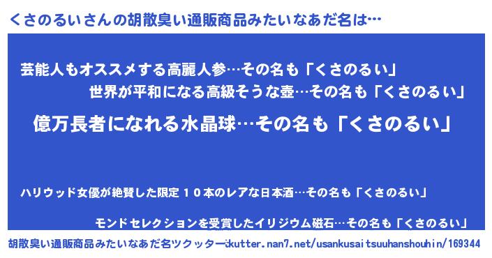 | 意味不明あだ名 | 『ペロリンくさのるい』『自称くさのるい』 |