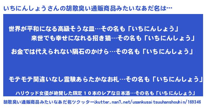 | 男性向けラノベタイトル風あだ名 | 『ノーゲーム・ノーイチニンショウ』 |