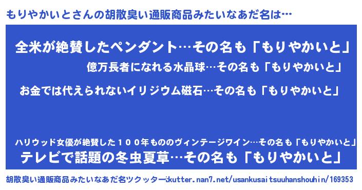 | ヘコむあだ名 | 『もりっぺ』『もりっふぃ~』 |