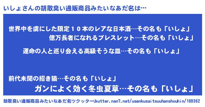 | 意味不明あだ名 | 『いしょフォーエバー』『自称いしょ』 |