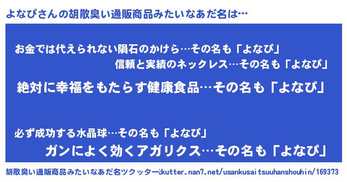 | 意味不明あだ名 | 『永久保存よなぴ』『自称よなぴ』 |