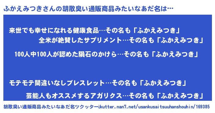 | ヘコむあだ名 | 『ふかえみつき(震え声)』『ふかっ子』 |