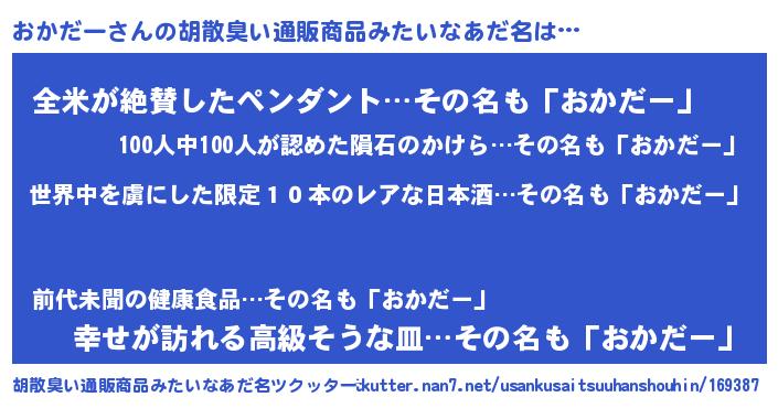 | 意味不明あだ名 | 『住所不定無職おかだー(65歳)』 |