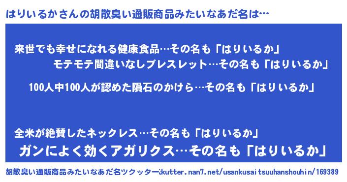 | ヘコむあだ名 | 『はりいるか(遠い目)』『はりにゅー』 |