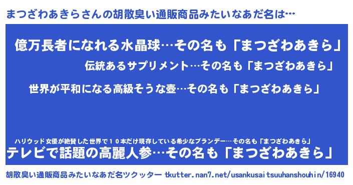 | 肩書あだ名 | 『まつざわあきら大統領』 |