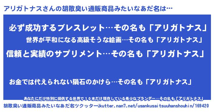 | ヒーロー風カッコイイあだ名 | 『暗黒騎士アリ』『スーパーアリガトナス』 |