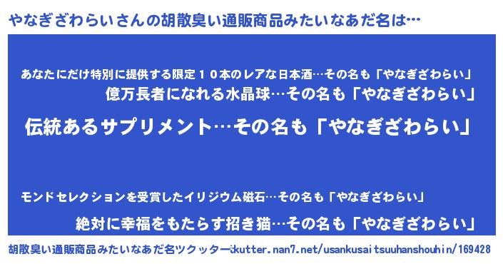 | ポケモン風あだ名 | 『ヒヤナギザワライ』『ヤーナイ』 |