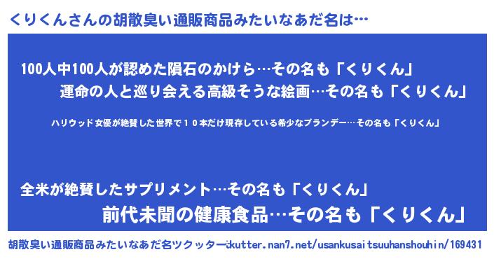 | ヒーロー風カッコイイあだ名 | 『仮面クリダー』『正義の使者くりくん』 |