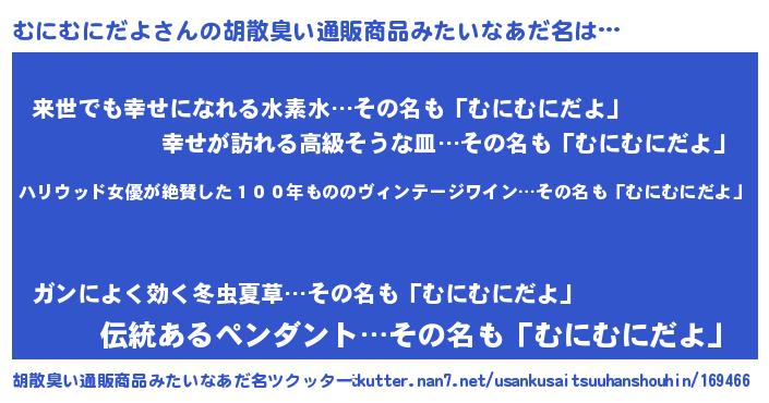 | 伝説のあだ名 | 『聞きしに勝る吟遊詩人むにむにだよ』 |