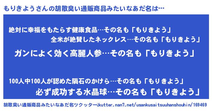 | 意味不明あだ名 | 『自称もりきよう』『永久保存もりきよう』 |