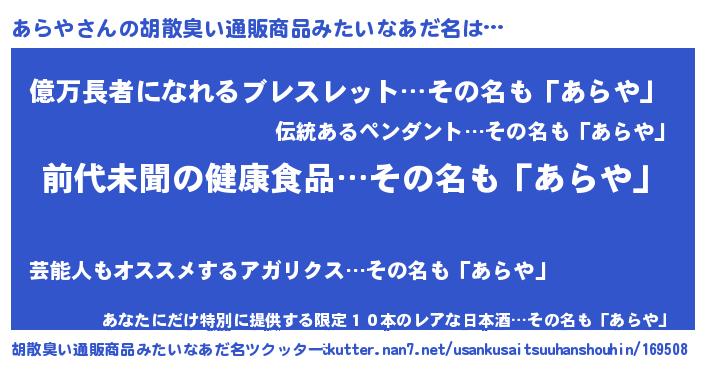 | ヘコむあだ名 | 『あらや(爆)』『あらっふぃ~』 |