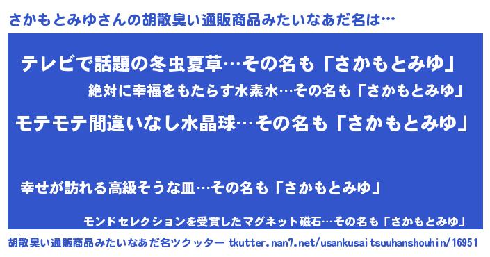 | ヘコむあだ名 | 『さかにゅー』『さかもとみゆ(苦笑)』 |