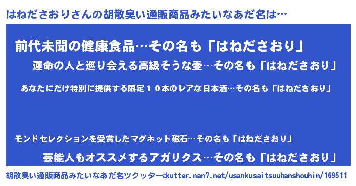 | 意味不明あだ名 | 『住所不定無職はねださおり(39歳)』 |