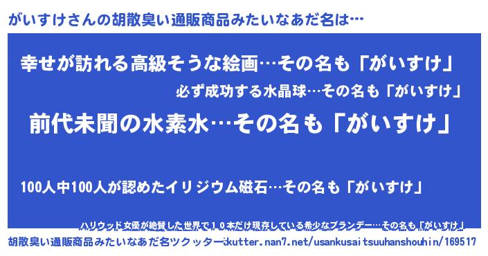| 意味不明あだ名 | 『永久保存がいすけ』『ペロリンがいすけ』 |