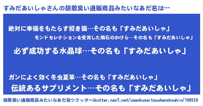 | ヘコむあだ名 | 『すみにゅー』『すみだあいしゃ(笑)』 |