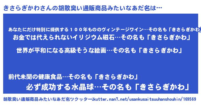 | 意味不明あだ名 | 『きさらぎかわフォーエバー』 |