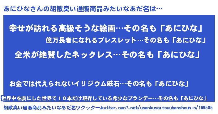 | 意味不明あだ名 | 『とにかく怪しいあにひな』 |