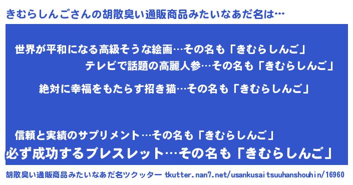 | 意味不明あだ名 | 『永久保存きむらしんご』 |