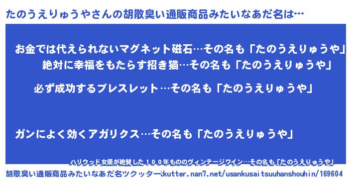 | ヘコむあだ名 | 『たのふぇ~』『たのうえりゅうや(笑)』 |