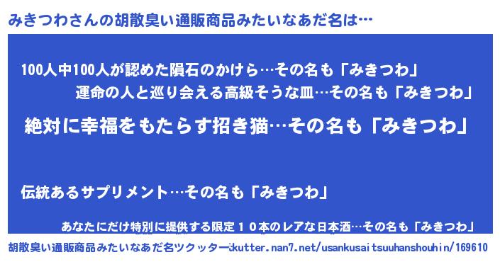 | ヘコむあだ名 | 『みきつわ(笑)』『なまこ酢』 |