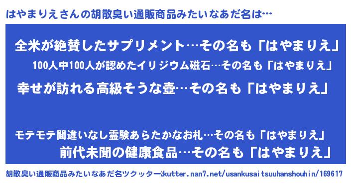 | 意味不明あだ名 | 『はやまりえフォーエバー』 |