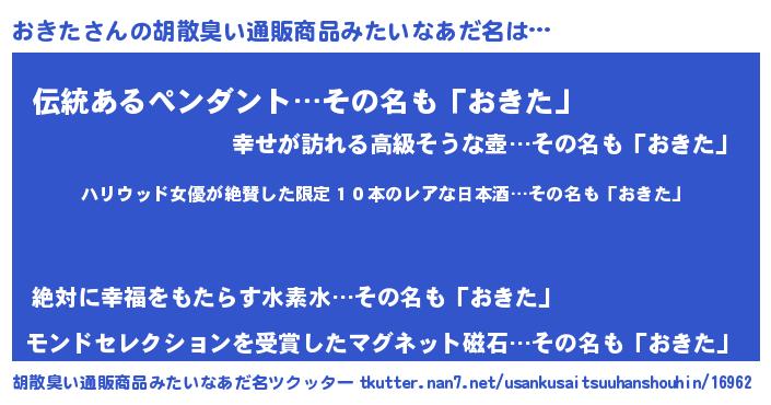 | 意味不明あだ名 | 『住所不定無職おきた(59歳)』 |
