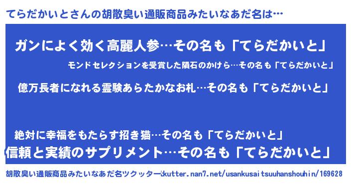 | 意味不明あだ名 | 『ペロリンてらだかいと』 |