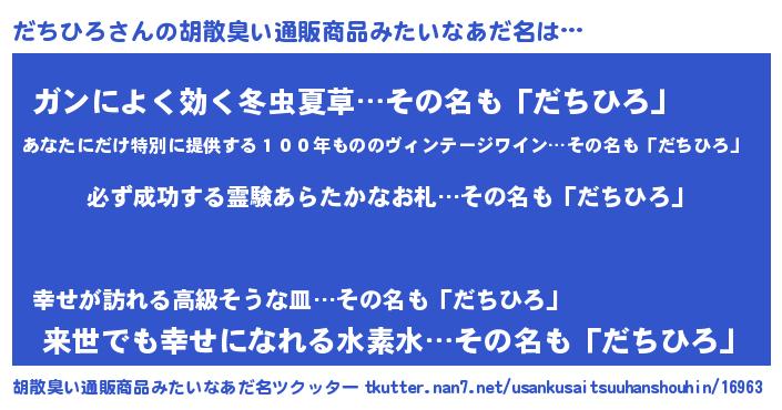 | 男性向けラノベタイトル風あだ名 | 『だちひろの憂鬱』 |