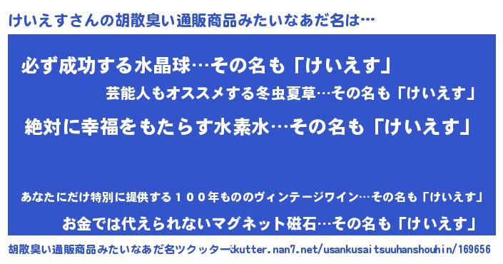 | ヘコむあだ名 | 『けいえす(震え声)』『けいにー』 |