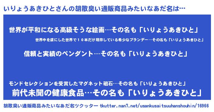 | 欧米人風あだ名 | 『トリンドルいりょうあきひと』 |