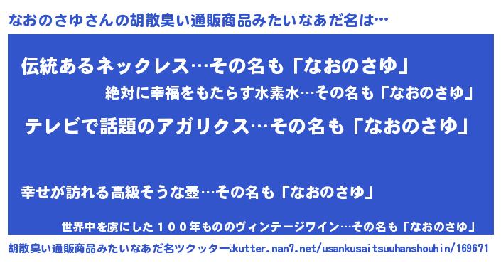 | ヘコむあだ名 | 『なおっ子』『なおのさゆ(爆)』 |