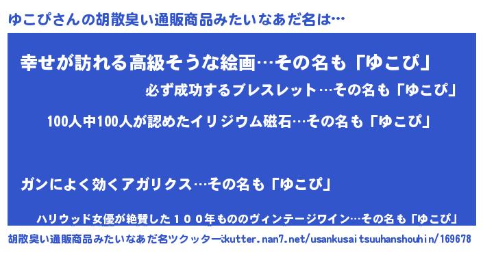 | ヘコむあだ名 | 『つくし』『ゆこにー』『ゆこを』 |