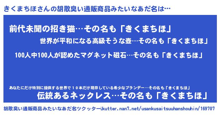 | ヘコむあだ名 | 『きくまちほ(笑)』『きく太郎』 |