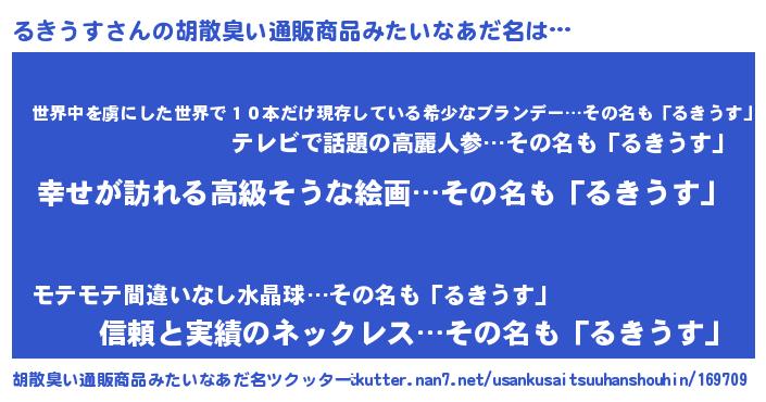 | 意味不明あだ名 | 『るきうすフォーエバー』『自称るきうす』 |