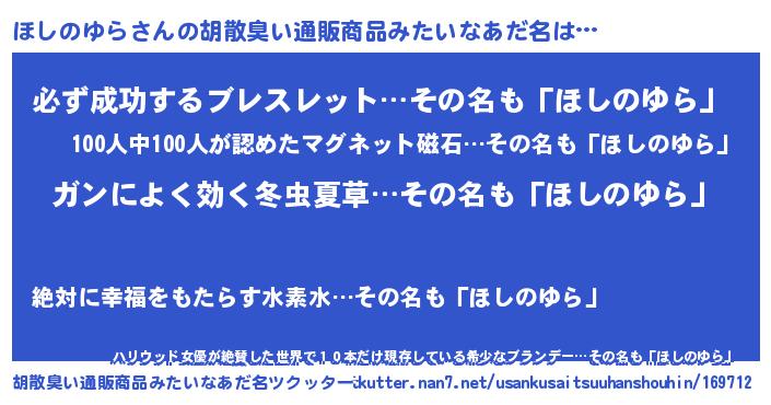 | 恥ずかしいあだ名 | 『ホシノユラデラックス』『ほしちん』 |