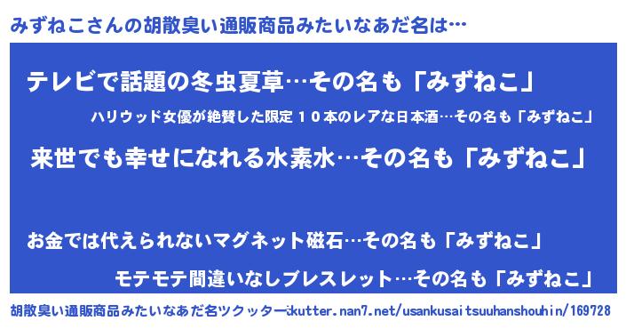 | ヘコむあだ名 | 『みずねこ(遠い目)』『みずふぇ~』 |
