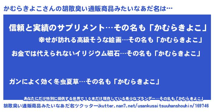| 女子向けラノベタイトル風あだ名 | 『かむらきよこ恋絵巻』 |