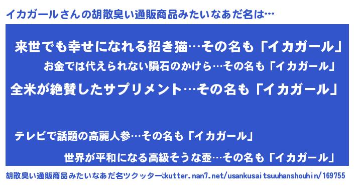| 意味不明あだ名 | 『とにかく怪しいイカガール』 |
