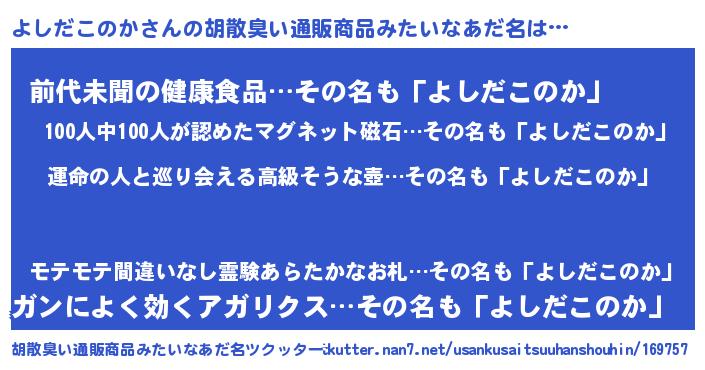 | ヘコむあだ名 | 『レバニラ』『よしだこのか(遠い目)』 |