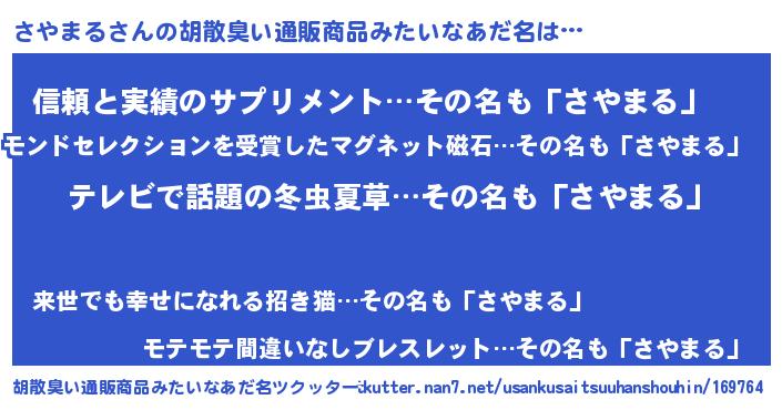 | ヘコむあだ名 | 『さやぷりん』『さやふぇ~』『豆乳』 |