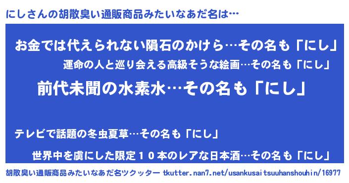 | ヒーロー風カッコイイあだ名 | 『ネオニシ』『愛の使者にし』 |