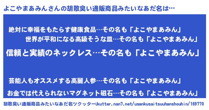 | 意味不明あだ名 | 『とにかく怪しいよこやまあみん』 |
