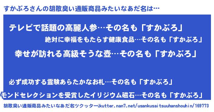 | 意味不明あだ名 | 『すかぶろフォーエバー』『自称すかぶろ』 |