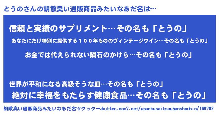 | ヒーロー風カッコイイあだ名 | 『愛の使者とうの』『暗黒騎士トウ』 |
