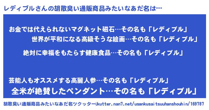 | 意味不明あだ名 | 『永久保存レディブル』 |
