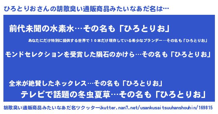 | ヘコむあだ名 | 『ひろとりお(遠い目)』『ひろぷりん』 |